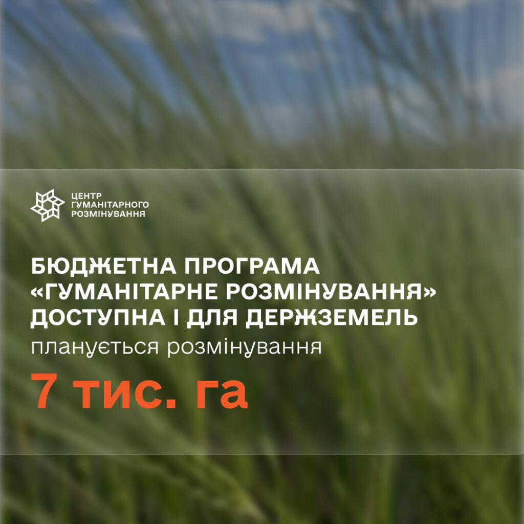 The Cabinet of Ministers of Ukraine supported the resolution that allows the inclusion of “State Land Bank” in the budget program “Humanitarian demining”. The right to join the “Humanitarian demining program was also granted to business associations, 100% of whose shares belong to the state and which use state-owned land plots, thanks to the initiative of the Ministry of Economy, Environment and Agriculture of Ukraine and the Center for Humanitarian Demining.