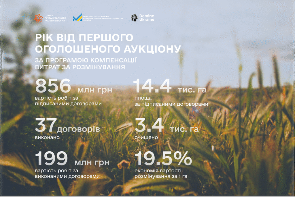 On September 4, 2024, the Humanitarian Demining Center (HDC) announced the first auction for the purchase of agricultural land demining services under the cost compensation program. During the year of the program, the HDC signed 80 contracts for the clearance of 14.4 thousand hectares of agricultural land. The cost of such work according to the auction results amounted to UAH 856.3 million. As of the beginning of September, humanitarian demining operators had fulfilled 37 contracts, returning 3.4 thousand hectares to use.
